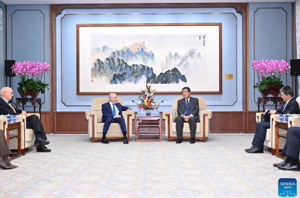 Chinese Vice Premier He Lifeng, also a member of the Political Bureau of the Communist Party of China (CPC) Central Committee, meets with Evan Greenberg, executive vice chair of the National Committee on U.S.-China Relations (NCUSCR), and Stephen Orlins, president of the NCUSCR, in Beijing, capital of China, Nov. 12, 2025. (Xinhua/Yue Yuewei)
