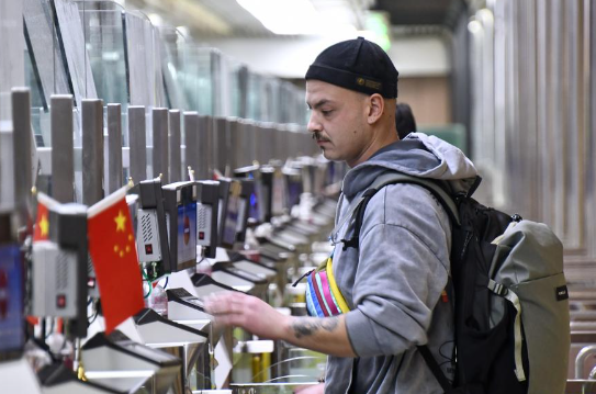 A foreign tourist goes through customs at the Beijing Daxing International Airport in Beijing, capital of China, Dec. 27, 2024. (Xinhua/Ju Huanzong)