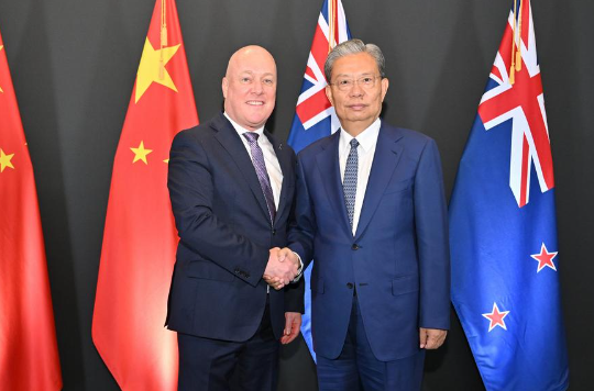 Zhao, chairman of the National People's Congress Standing Committee, met with New Zealand Prime Minister Christopher Luxon in Auckland and held talks with Brownlee in Wellington.