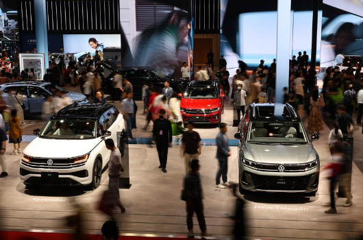 Visitors look at Volkswagen cars at the 21st Shanghai International Automobile Industry Exhibition in east China's Shanghai, May 1, 2025. (Xinhua/Fang Zhe)