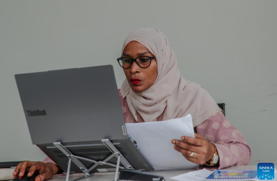 Amina works at her office in Dar es Salaam, Tanzania, Jan 15, 2026. (Xinhua/Emmanuel Herman)