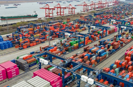 An aerial drone photo shows a view of the Longtan Container Terminal at Nanjing Port, east China's Jiangsu Province, Dec. 31, 2025. (Photo by Xin Yi/Xinhua)