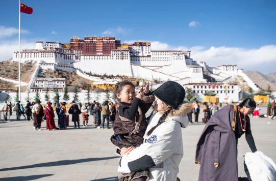 People visit the Potala Palace square in Lhasa, southwest China's Xizang Autonomous Region, Feb. 11, 2024. (Xinhua/Sun Ruibo)