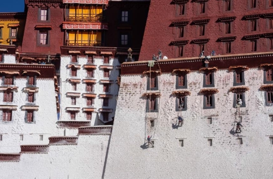 A typical Tibetan traditional earth-stone-wood structure, the Potala Palace went through two major restorations, with the first lasting from 1989 to 1994 and the second starting in the early 21st Century.