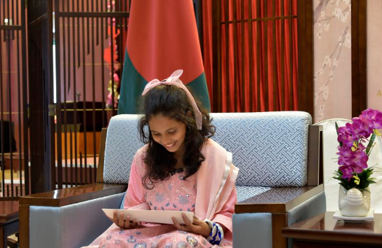 Alifa Chin reads a reply letter from Chinese President Xi Jinping in Dhaka, Bangladesh, on May 29, 2023. (Xinhua)