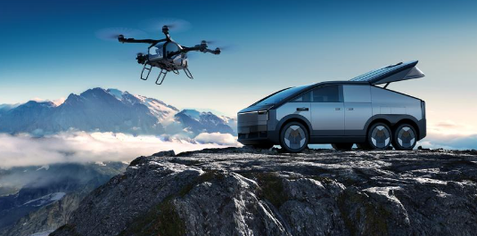 The flying car comprises a six-wheel ground vehicle, referred to as the "mothership," and a detachable electric vertical take-off and landing (eVTOL) aircraft.