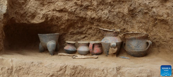 This undated file photo shows artifacts unearthed from a tomb at the Shimao ruins in Yulin, northwest China's Shaanxi Province. (National Cultural Heritage Administration/Handout via Xinhua)