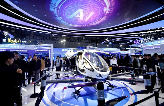 Visitors learn about a manned aircraft during the China International Digital Economy Expo 2025 in Shijiazhuang, north China's Hebei Province, Oct. 17, 2025. (Xinhua/Wang Xiao)