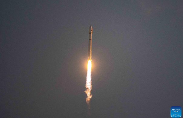 A Long March-12 carrier rocket carrying a group of internet satellites blasts off from the Hainan commercial spacecraft launch site in south China's Hainan Province, Dec. 12, 2025. The rocket lifted off at 7:00 a.m. on Friday. The payloads, the 16th group of low-orbit internet satellites, entered into preset orbit successfully. (Xinhua/Pu Xiaoxu)