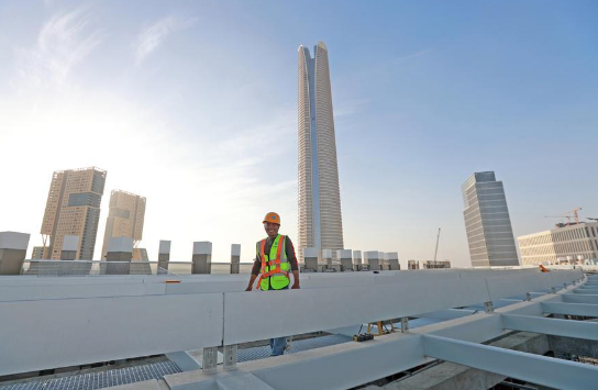 A Chinese worker is seen at the construction site of the Central Business District (CBD) of Egypt's new administrative capital, 45 kilometers east of Cairo, Egypt, Nov. 22, 2023. (Xinhua/Sui Xiankai)
