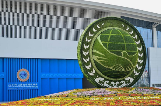 This photo taken on Aug. 30, 2025 shows an exterior view of the main venue of the Shanghai Cooperation Organization (SCO) Summit 2025 in north China's Tianjin. (Xinhua/Sun Fanyue)