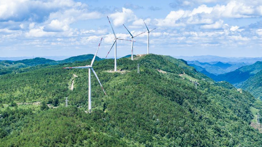 An aerial drone photo taken on July 4, 2025 shows wind turbines in Longli County, southwest China's Guizhou Province. (Xinhua/Tao Liang)