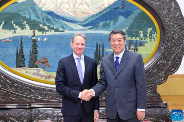 He, also a member of the Political Bureau of the Communist Party of China (CPC) Central Committee, made the remarks when meeting with former U.S. Secretary of Treasury Timothy Geithner, now chairman of Warburg Pincus.