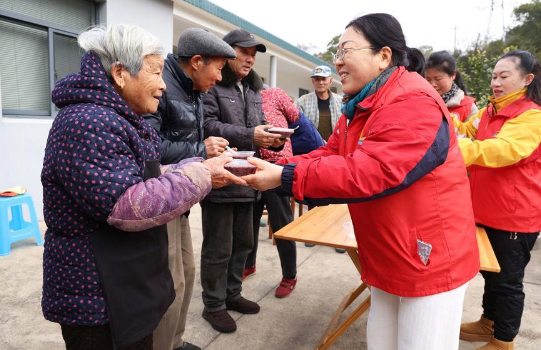 Volunteers serve Laba porridge to elderly residents in Dinghai District of Zhoushan, east China's Zhejiang Province, on Jan. 25, 2026. (Photo by Chen Yongjian/Xinhua)