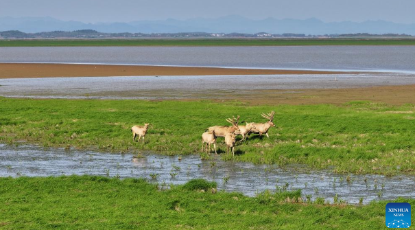 Once widespread across eastern China, this species nearly vanished more than a century ago, with some surviving in a European estate. In 2018, 47 deer were released into the surrounding wetlands at Poyang Lake. According to wildlife authorities in Jiangxi, the population has since grown to about 80.