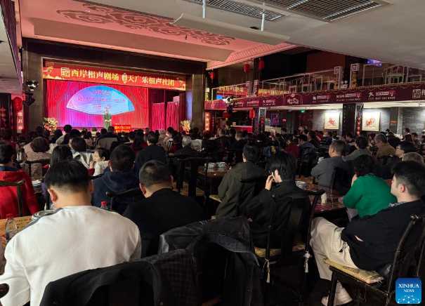 People watch crosstalk, or Xiangsheng in Chinese, a popular Chinese comedic performance art, at a crosstalk teahouse in north China's Tianjin, Feb. 19, 2026.(Xinhua)