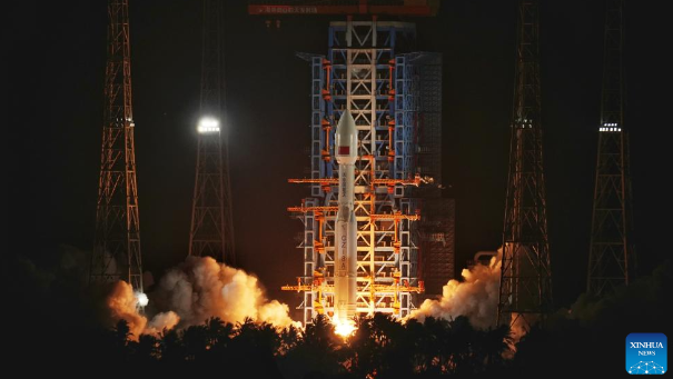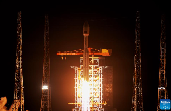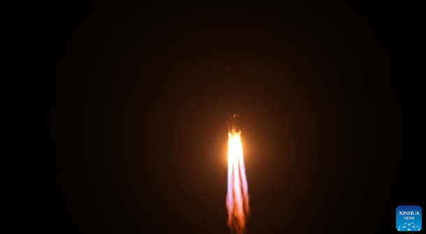 The rocket lifted off at 3:48 a.m. (Beijing Time) from the Hainan commercial spacecraft launch site. It successfully placed the payloads, the 20th group of low-orbit internet satellites, into preset orbit. (Photo by Liu Jianqiu/Xinhua)