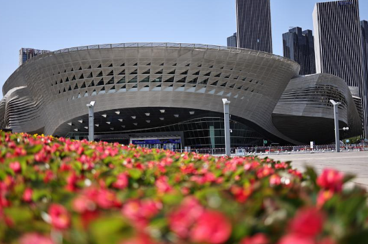 This photo taken on June 27, 2024 shows a view outside Dalian International Conference Center, venue of the 2024 Summer Davos in Dalian, northeast China's Liaoning Province. (Xinhua/Yang Qing)