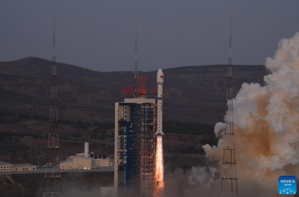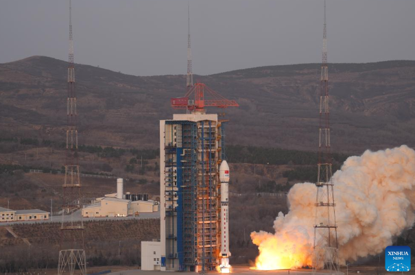 A Long March-2D carrier rocket carrying two new satellites blasts off from the Taiyuan Satellite Launch Center in north China's Shanxi Province on March 26, 2026.