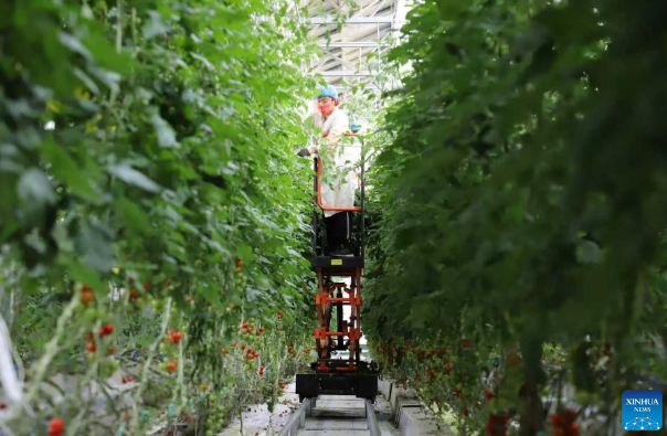 A technician works at a smart greenhouse of an agricultural high-tech experimental base in Shouguang City, east China's Shandong Province, Sept. 4, 2025.(Xinhua)