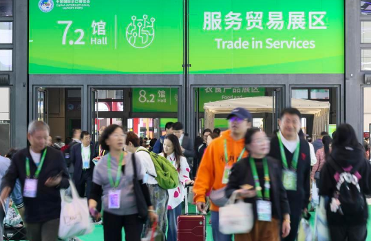 This photo shows the Trade in Services Exhibition area during the eighth China International Import Expo (CIIE) in east China's Shanghai, Nov. 9, 2025. (Xinhua/Wang Xiang)