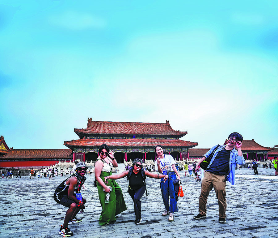 Students from the "An Overview of Modern China and City Development" summer program visit the Palace Museum in Beijing on Aug 10. [Photo provided to China Daily]