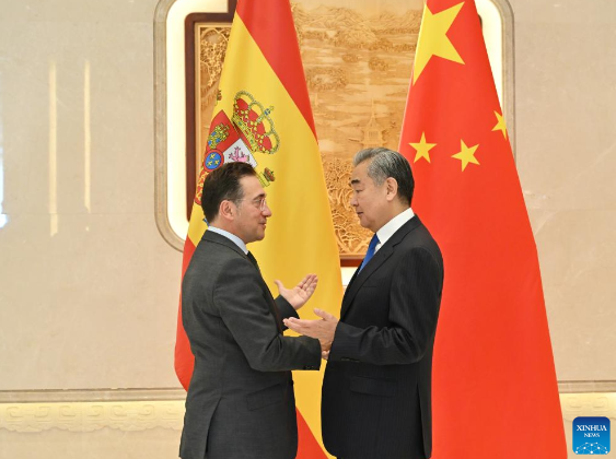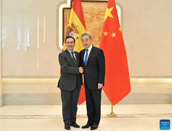 Chinese Foreign Minister Wang Yi held talks with his Spanish counterpart José Manuel Albares Bueno in Hangzhou, east China's Zhejiang Province, on Wednesday, with both sides pledging to expand cooperation in economy, education, culture, tourism and other fields.
