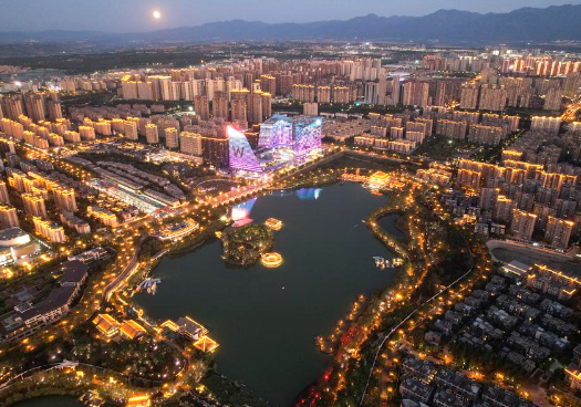This aerial photo taken on June 14, 2022 shows a view of the Qujiang New District in Xi'an, northwest China's Shaanxi Province. (Xinhua/Shao Rui)