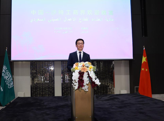 Chinese Vice President Han Zheng delivers a speech at a dinner with representatives from the Chinese and Saudi business communities in Saudi Arabia, Oct. 29, 2025. Han visited Saudi Arabia at the invitation of Saudi Arabia's Crown Prince and Prime Minister Mohammed bin Salman from Oct. 28 to Nov. 1. (Xinhua/Wang Ye)