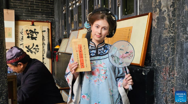 Hair styled up and dressed in traditional attire, Ukrainian Karyna Kovalevska strolled through the 2,800-year-old town of Pingyao, a UNESCO World Heritage site in north China's Shanxi Province, documenting the ancient architecture and chatting with shop owners and residents.