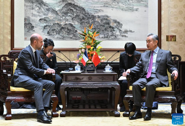 Chinese Foreign Minister Wang Yi met with French Foreign Minister Jean-Noel Barrot on Wednesday in Beijing.