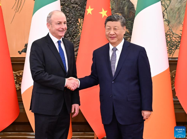 When meeting with Taoiseach of Ireland Micheal Martin in Beijing, Xi said China is willing to strengthen economic and trade cooperation with Ireland, align development strategies in fields such as artificial intelligence, digital economy, and medicine and healthcare, promote two-way investment, leverage each other's strengths, share opportunities and pursue common development.