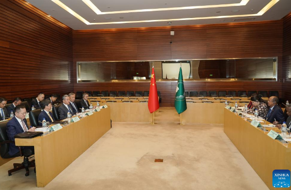 Chinese Foreign Minister Wang Yi and African Union (AU) Commission Chairperson Mahmoud Ali Youssouf on Thursday jointly held the ninth China-AU Strategic Dialogue at the AU headquarters in Addis Ababa, the capital of Ethiopia.
