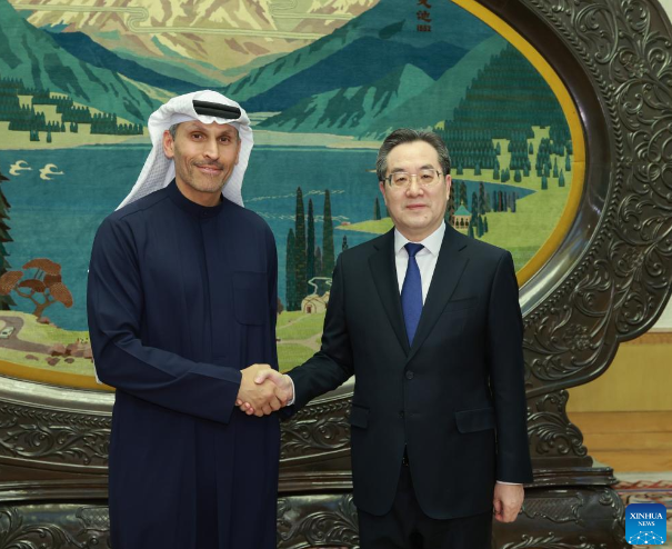 Chinese Vice Premier Ding Xuexiang met with Khaldoon Khalifa Al Mubarak, special envoy of the president of the United Arab Emirates (UAE) to China, on Wednesday in Beijing.