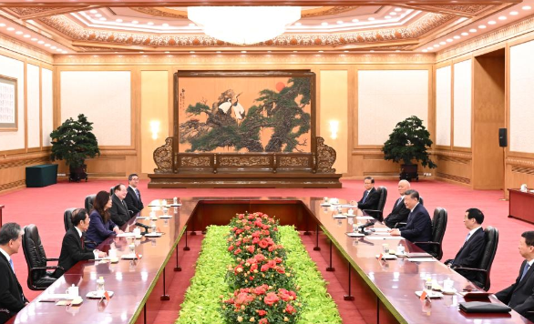 Xi Jinping, general secretary of the Communist Party of China (CPC) Central Committee, meets with a delegation of the Chinese Kuomintang (KMT) party led by its chairwoman Cheng Li-wun in Beijing, capital of China, April 10, 2026. (Xinhua/Xie Huanchi)