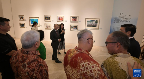 9月28日,嘉宾在新加坡中国文化中心举行的中新建交35周年图片展上参观。新华社发(邓智炜摄)