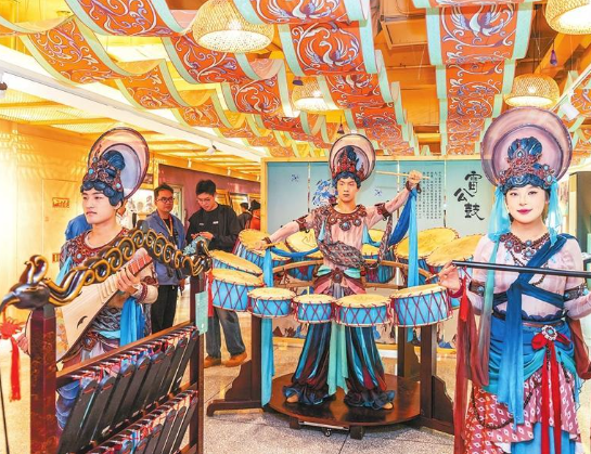 文明以止,人文也。在这处敦煌文化体验新空间,文物保护的“冷科技”与文化体验的“热叙事”达成精妙平衡,传统文化的“原真性”与当代诠释的“创造性”实现共生共荣。当人们带着对壁画肌理的触感、对古乐韵律的记忆离开,带走的不仅是一段体验,更是文明基因在当代的悄然播种——这正是敦煌文化跨越千年的生命力,也是中华民族文化自信的生动注脚。(本文配图均由杨浩圆摄)