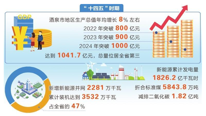 记者从今天省政府新闻办召开的“决胜收官‘十四五’ 争先进位话发展”主题系列新闻发布会上获悉,“十四五”期间,酒泉市紧扣“1246”总体思路,经济社会高质量发展亮点纷呈、成效显著。