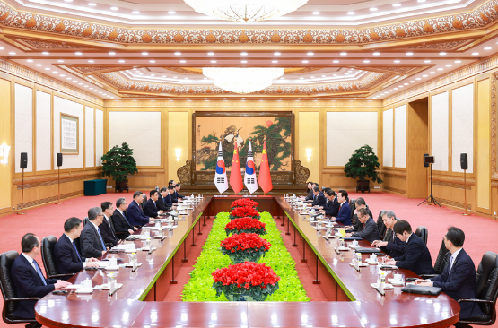 习近平指出,当前世界百年变局加速演进,国际形势更加变乱交织。中韩在维护地区和平、促进全球发展方面肩负重要责任,有广泛利益交集,应当坚定站在历史正确一边,作出正确战略选择。80多年前,中韩两国付出巨大民族牺牲,赢得抗击日本军国主义的胜利。今天更应携手捍卫二战胜利成果,守护东北亚和平稳定。作为经济全球化的受益者,中韩要共同反对保护主义,践行真正的多边主义,为推进平等有序的世界多极化、普惠包容的经济全球化作出贡献。