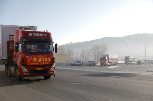 2023年12月26日,在甘肃省临夏州积石山高速出口,载着活动板房的货车驶向受灾乡镇。新华社记者 方欣 摄