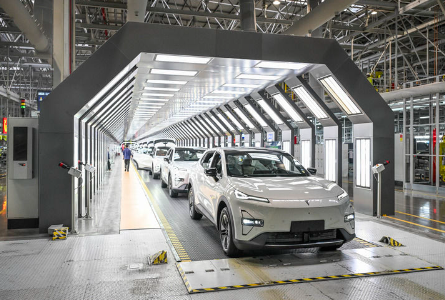 这是2025年1月9日在位于重庆市渝北区的长安汽车数智工厂总装车间拍摄的即将下线的新能源汽车。新华社记者 王全超 摄