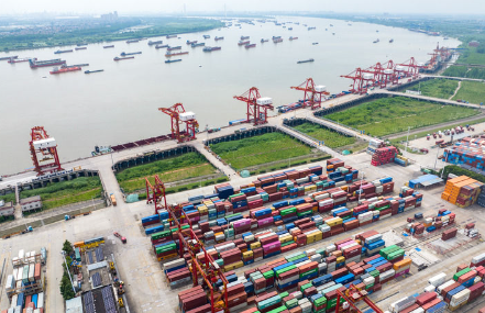 这是2024年6月1日拍摄的武汉阳逻港(无人机照片)。新华社记者 杜子璇 摄