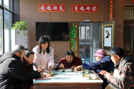 2025年12月28日,护理人员在江苏省海安高新区隆政街道德兴村亲上亲养老小院照顾老人用餐。新华社发(顾彬斌 摄)