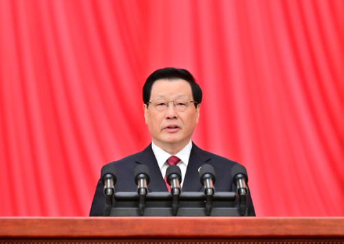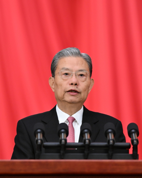 3月9日,十四届全国人大四次会议在北京人民大会堂举行第二次全体会议。受全国人大常委会委托,赵乐际委员长向大会报告全国人大常委会工作。 新华社记者 饶爱民 摄
