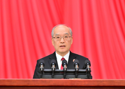 受全国人大常委会委托,赵乐际委员长向大会报告全国人大常委会工作。赵乐际在报告中指出,2025年是很不平凡的一年。一年来,在以习近平同志为核心的党中央坚强领导下,全国人大常委会坚持以习近平新时代中国特色社会主义思想为指导,全面贯彻落实党的二十大和二十届历次全会精神,学习贯彻习近平法治思想、习近平总书记关于坚持和完善人民代表大会制度的重要思想,聚焦建设更加完善的中国特色社会主义法治体系、建设更高水平的社会主义法治国家,紧紧围绕中国式现代化建设依法履职、担当尽责,各方面工作取得新的进展和成效。一是加强宪法实施和监督,维护国家法治统一。常委会两次审议民族团结进步促进法草案并提请本次大会审议,为铸牢中华民族共同体意识夯实法治根基。设立台湾光复纪念日,强化两岸同胞共同民族历史记忆。提高合宪性审查、备案审查工作质量,弘扬宪法精神、社会主义法治精神。二是加强立法工作,以高质量立法服务和保障改革发展。统筹立改废释纂,一年来共审议法律、法律解释、决定草案40件,通过其中24件,包括制定法律6件,修改法律14件等。三是履行监督职责,充分发挥人大监督在党和国家监督体系中的重要作用。共听取审议22个监督工作的报告,检查5件法律实施情况,组织开展2次专题询问、11项专题调研,作出1项决议。四是深化和拓展代表工作,更好发挥人大代表作用。全面贯彻实施新修改的代表法,持续加强代表工作能力建设,紧紧依靠代表做好各项工作,支持和保障代表依法履职。五是发挥人大对外交往特点优势,主动服务国家外交大局。六是全面加强自身建设,不断提高依法履职能力和水平。