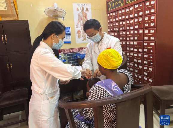 11月18日,在尼日尔尼亚美,中国医疗队医生为患儿针灸。新华社发(第24批援尼日尔中国医疗队供图)