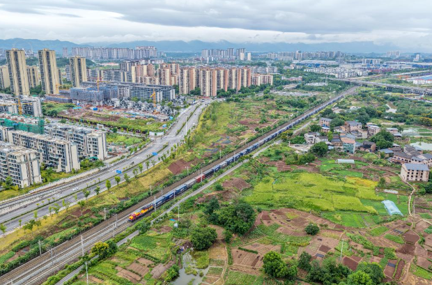 8 сентября 2025 года, грузовой поезд Китай-Европа покидает отправную станцию Туаньцзецунь в городе Чунцин /Юго-Западный Китай/. /Фото: Синьхуа/