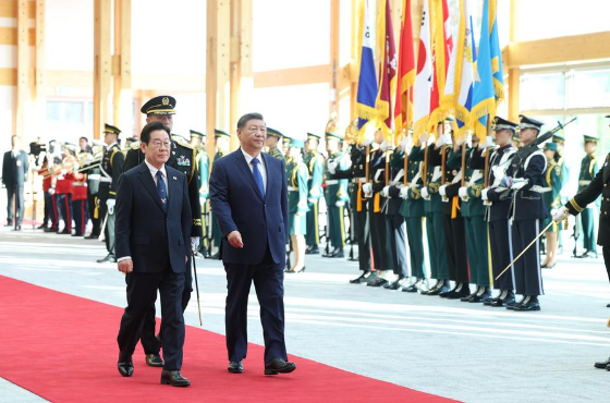 Перед началом переговоров Ли Чжэ Мен провел приветственную церемонию в честь Си Цзиньпина, который в сопровождении президента РК произвел смотр почетного караула.
