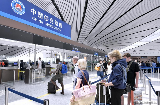 20 мая 2025 года, пассажиры проходят пограничный контроль в пекинском международном аэропорту Дасин перед выездом из Китая. /Фото: Синьхуа/