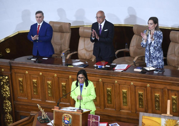 15 января, Каракас. И. о. президента Венесуэлы Делси Родригес /на переднем плане/ представляет свой ежегодный доклад законодательному органу. /Фото: Синьхуа/